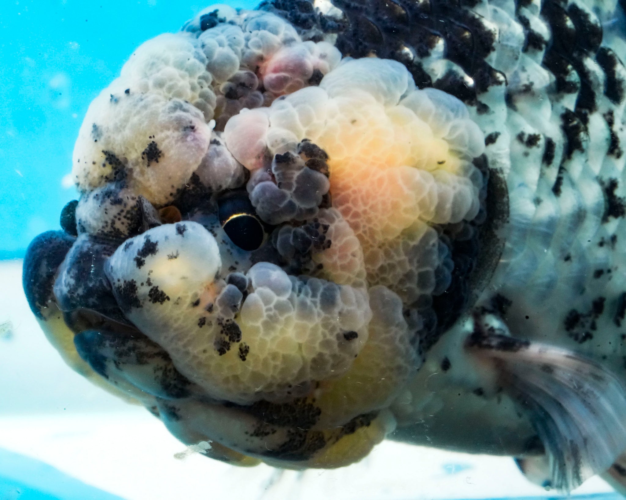 White Tiger Calico Ranchu/Lionchu Female (5.5 inches) Imported from Thailand